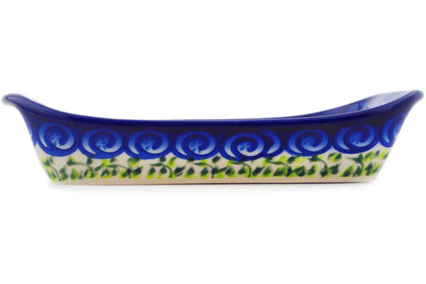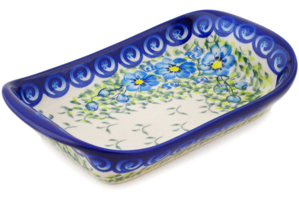 This Polish Pottery 7" Platter with Handles - Gorgeous Morning Glory is handmade and handpainted by the Ceramika Bona factory in Boleslawiec, Poland.