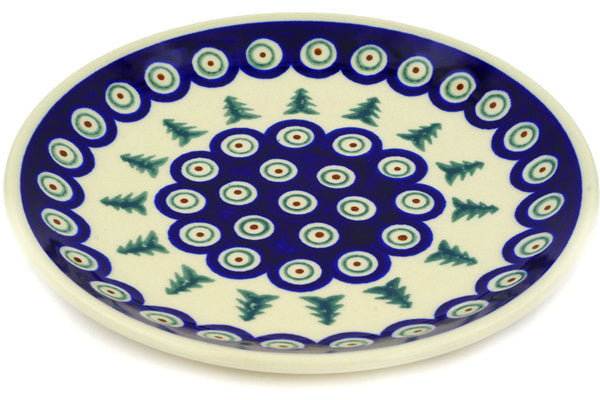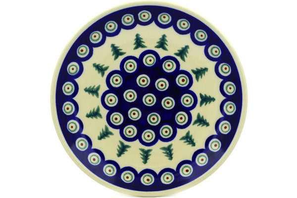 This Polish Pottery 7" Plate - Peacock Evergreen is handmade and handpainted by the Zaklady Ceramiczne factory in Boleslawiec, Poland.