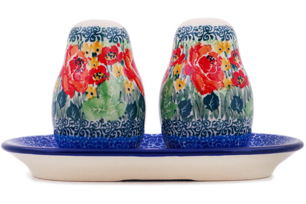 This Polish Pottery 7" Salt and Pepper Set - Splendid Meadow is handmade and handpainted by the Ceramika Artystyczna factory in Boleslawiec, Poland.