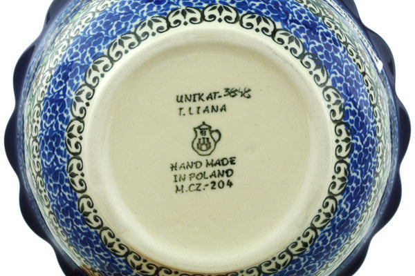 This Polish Pottery 7" Scalloped Bowl - Baby's Breath Butterfly is handmade and handpainted by the Ceramika Artystyczna factory in Boleslawiec, Poland.