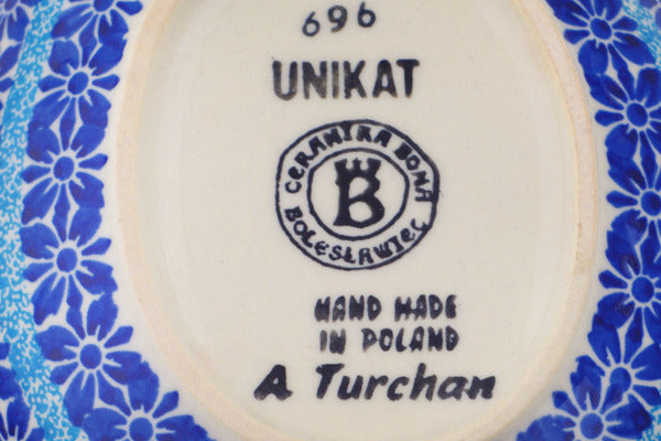 This Polish Pottery 7" Scalloped Bowl - Bold Blue Poppies is handmade and handpainted by the Ceramika Bona factory in Boleslawiec, Poland.