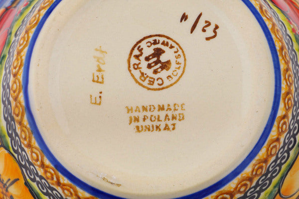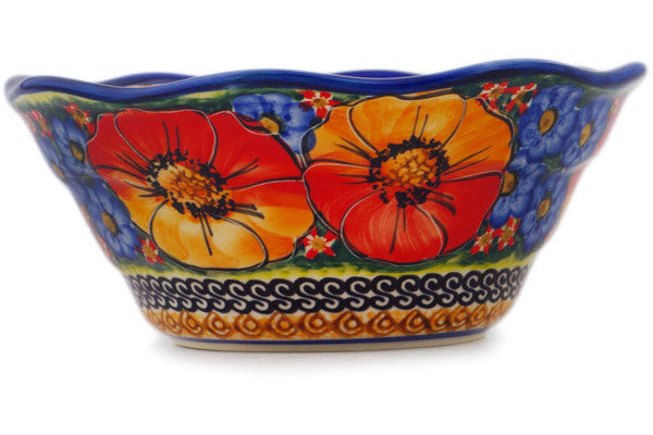 This Polish Pottery 7" Scalloped Bowl - Bright Beauty is handmade and handpainted by the Cer-Raf factory in Boleslawiec, Poland.