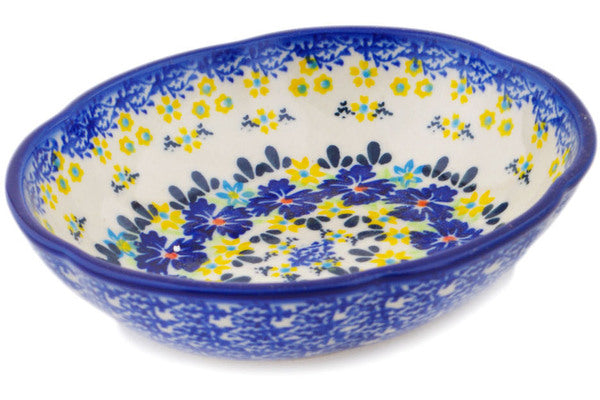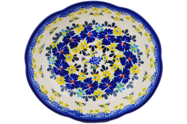 This Polish Pottery 7" Scalloped Bowl - Cornflower Meadow is handmade and handpainted by the Ceramika Bona factory in Boleslawiec, Poland.