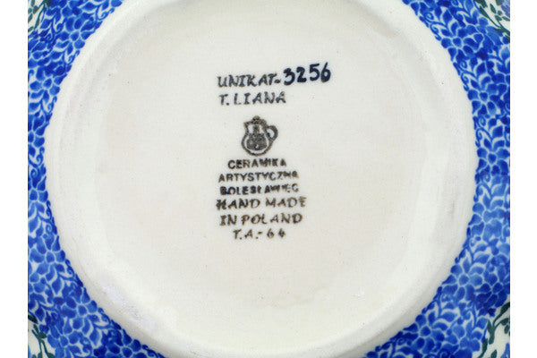 This Polish Pottery 7" Scalloped Bowl - Hummingbird Blue is handmade and handpainted by the Ceramika Artystyczna factory in Boleslawiec, Poland.