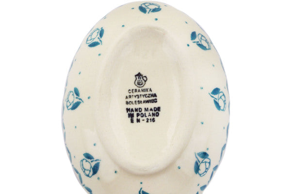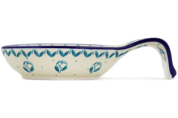 This Polish Pottery 7" Spoon Rest - Spearmint Rose is handmade and handpainted by the Ceramika Artystyczna factory in Boleslawiec, Poland.