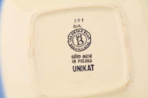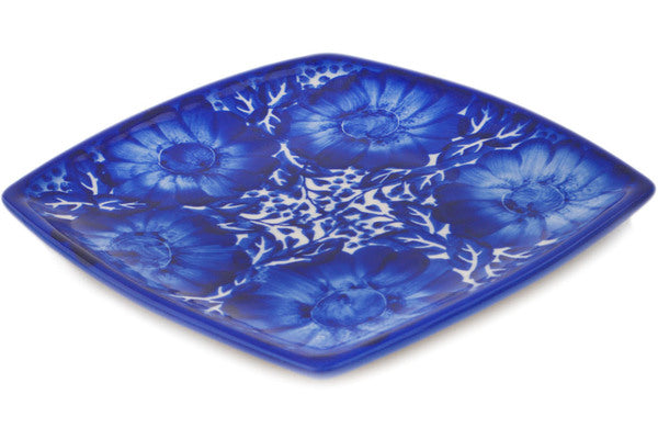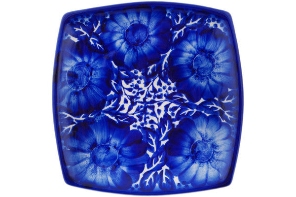 This Polish Pottery 7" Square Plate - Cobalt Fantasy is handmade and handpainted by the Ceramika Bona factory in Boleslawiec, Poland.