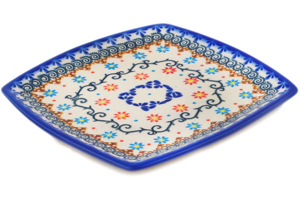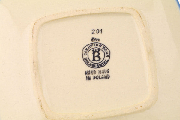 This Polish Pottery 7" Square Plate - Sunflower Dance is handmade and handpainted by the Ceramika Bona factory in Boleslawiec, Poland.