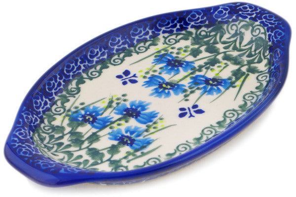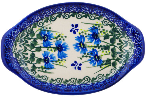 This Polish Pottery 7" Tray with Handles - Fresh Flora is handmade and handpainted by the Ceramika Bona factory in Boleslawiec, Poland.