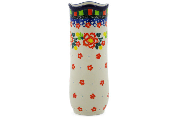 This Polish Pottery 7" Vase - Floral Puzzles is handmade and handpainted by the Ceramika Artystyczna factory in Boleslawiec, Poland.