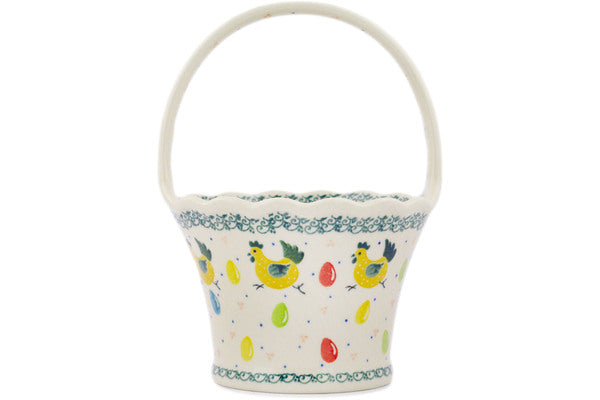 This Polish Pottery 8" Basket with Handle - 3343 is handmade and handpainted by the Ceramika Artystyczna factory in Boleslawiec, Poland.