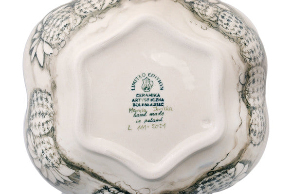 This Polish Pottery 8" Scalloped Fluted Bowl - Blooming Cactus is handmade and handpainted by the Ceramika Artystyczna factory in Boleslawiec, Poland.