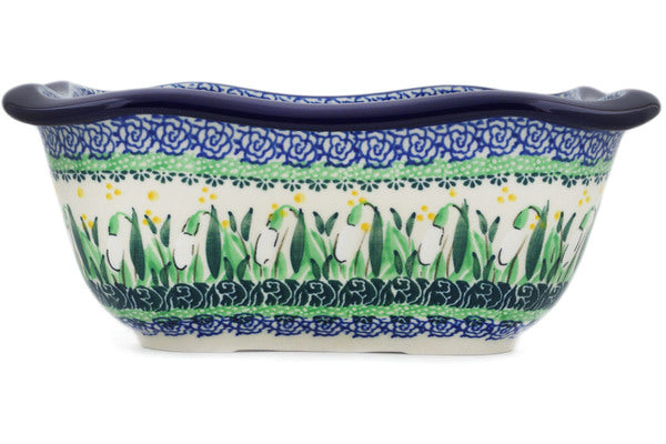 This Polish Pottery 8" Bowl - Snowdrops is handmade and handpainted by the Ceramika Artystyczna factory in Boleslawiec, Poland.