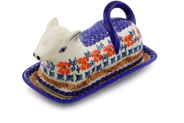 This Polish Pottery 8" Butter Dish - Red Cornflower is handmade and handpainted by the Ceramika Bona factory in Boleslawiec, Poland.