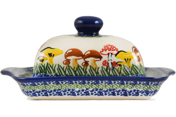 This Polish Pottery 8" Butter Dish - Wild Mushroom Picking is handmade and handpainted by the Ceramika Nina factory in Boleslawiec, Poland.