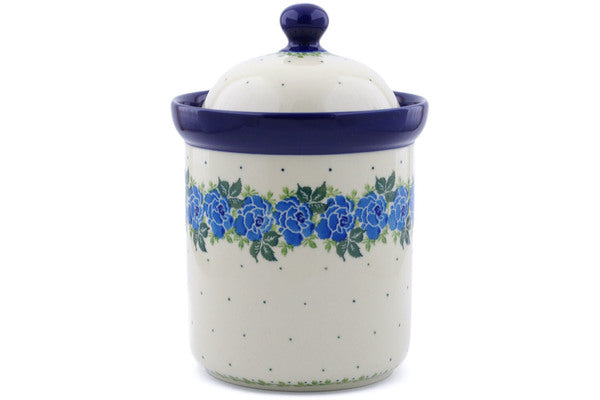 This Polish Pottery 8" Jar with Lid - Blue Rose is handmade and handpainted by the Ceramika Artystyczna factory in Boleslawiec, Poland.
