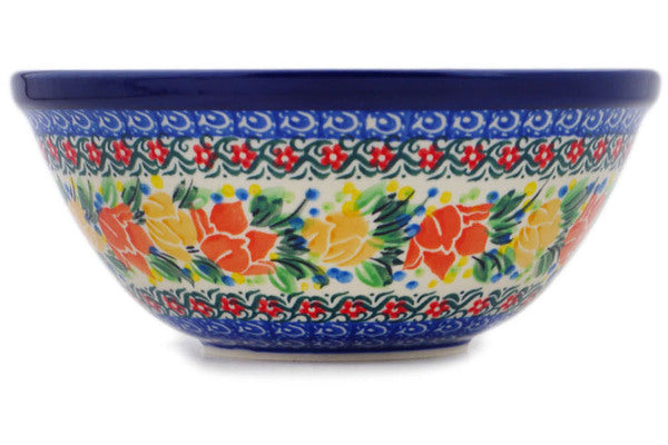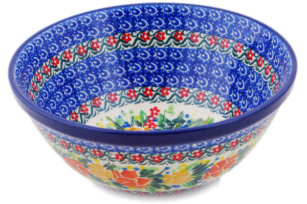 This Polish Pottery 8" Bowl - Red And Yellow Flowers is handmade and handpainted by the Ceramika Artystyczna factory in Boleslawiec, Poland.
