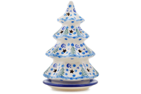 This Polish Pottery 8" Christmas Tree Candle Holder - Evergreen Night is handmade and handpainted by the Ceramika Artystyczna factory in Boleslawiec, Poland.