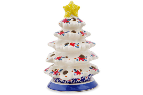 This Polish Pottery 8" Christmas Tree Candle Holder - Starry Wreath is handmade and handpainted by the Manufaktura factory in Boleslawiec, Poland.