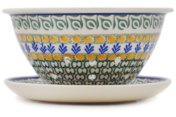 This Polish Pottery 8" Colander with Plate - Autumn Wheatfields is handmade and handpainted by the Ceramika Artystyczna factory in Boleslawiec, Poland.