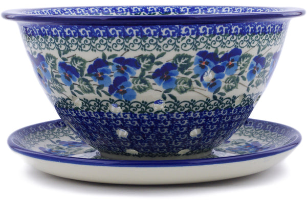 This Polish Pottery 8" Colander with Plate - Blue Pansy is handmade and handpainted by the Ceramika Artystyczna factory in Boleslawiec, Poland.