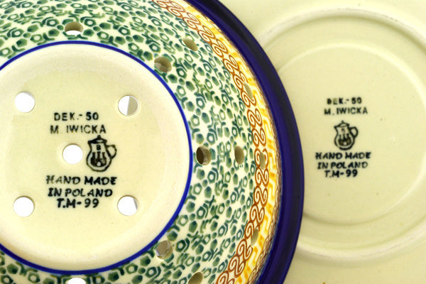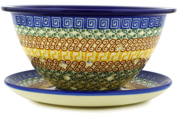 This Polish Pottery 8" Colander with Plate - Grecian Sea is handmade and handpainted by the Ceramika Artystyczna factory in Boleslawiec, Poland.