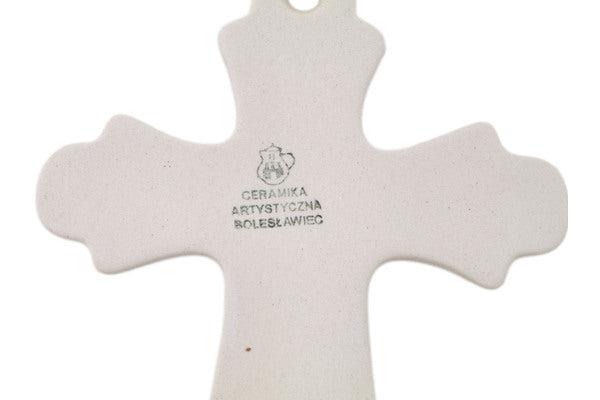 This Polish Pottery 8" Cross - Leaf Wreath is handmade and handpainted by the Ceramika Artystyczna factory in Boleslawiec, Poland.