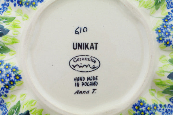 This Polish Pottery 8" Egg Plate - Maroon Blossoms is handmade and handpainted by the Ceramika Nina factory in Boleslawiec, Poland.