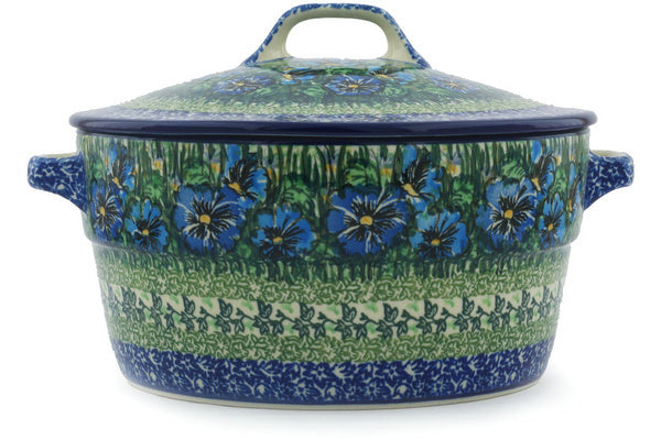 This Polish Pottery 9" Baker with Cover with Handles - Bloomimg Meadow is handmade and handpainted by the Ceramika Artystyczna factory in Boleslawiec, Poland.