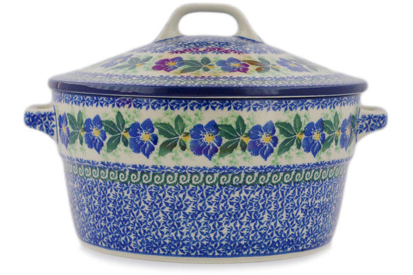 This Polish Pottery 9" Baker with Cover with Handles - Infinity Flower is handmade and handpainted by the Ceramika Artystyczna factory in Boleslawiec, Poland.