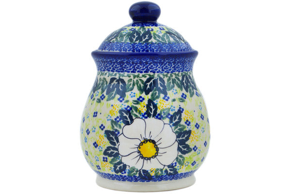 This Polish Pottery 8" Jar with Lid - Floral Fantasy is handmade and handpainted by the Ceramika Nina factory in Boleslawiec, Poland.