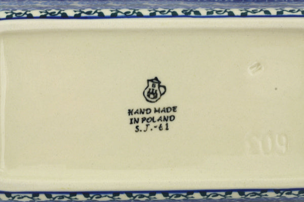 This Polish Pottery 8" Rectangular Baker - Blue Rosette Wreath is handmade and handpainted by the Ceramika Artystyczna factory in Boleslawiec, Poland.