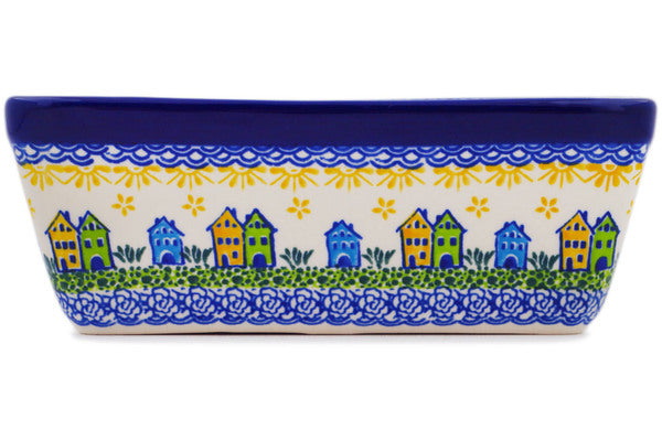 This Polish Pottery 8" Rectangular Baker - Riverside Village is handmade and handpainted by the Ceramika Artystyczna factory in Boleslawiec, Poland.