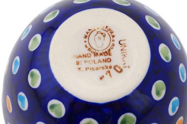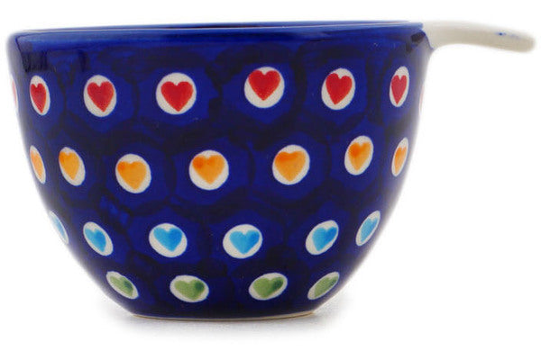 This Polish Pottery 8 oz Measuring Cup - Heart Disco is handmade and handpainted by the Manufaktura factory in Boleslawiec, Poland.