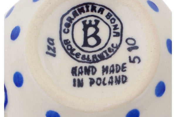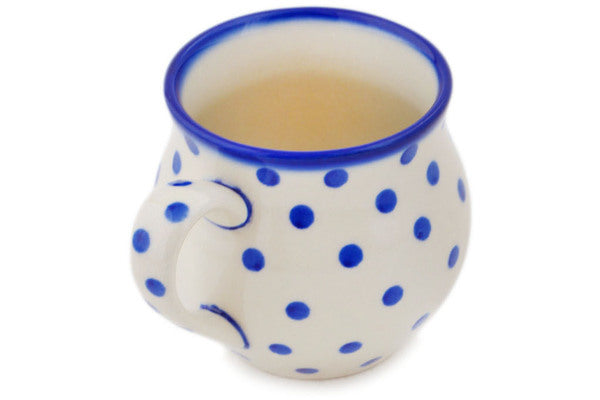 This Polish Pottery 8 oz Bubble Mug - Blue Polka Dot is handmade and handpainted by the Ceramika Bona factory in Boleslawiec, Poland.