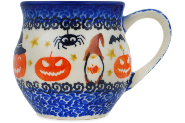 This Polish Pottery 8 oz Bubble Mug - Harvest Haunt is handmade and handpainted by the Ceramika Nina factory in Boleslawiec, Poland.