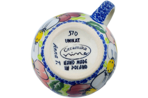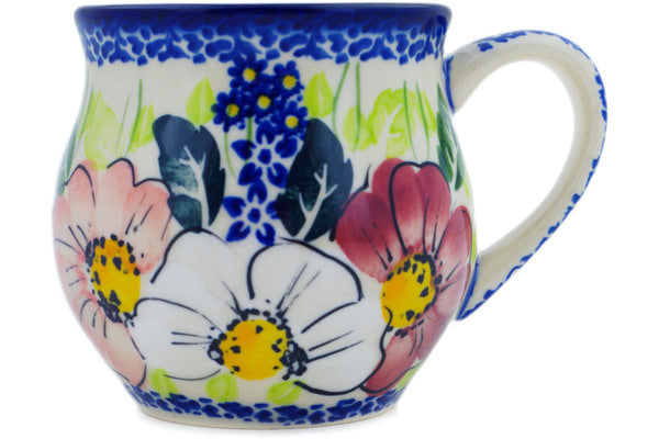 This Polish Pottery 8 oz Bubble Mug - Maroon Blossoms is handmade and handpainted by the Ceramika Nina factory in Boleslawiec, Poland.
