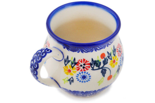 This Polish Pottery 8 oz Bubble Mug - Pastel Spring Wreath is handmade and handpainted by the Ceramika Bona factory in Boleslawiec, Poland.