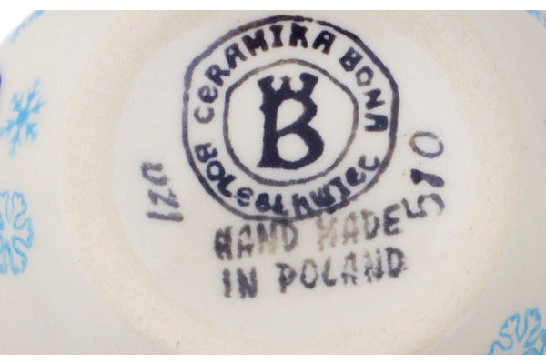 This Polish Pottery 8 oz Bubble Mug - Snowy Flight is handmade and handpainted by the Ceramika Bona factory in Boleslawiec, Poland.