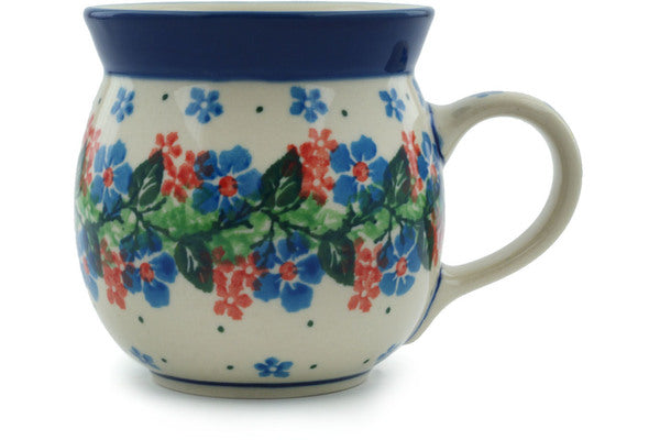 This Polish Pottery 8 oz Bubble Mug - Summer Wreath is handmade and handpainted by the Ceramika Artystyczna factory in Boleslawiec, Poland.