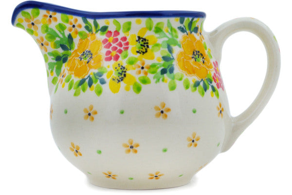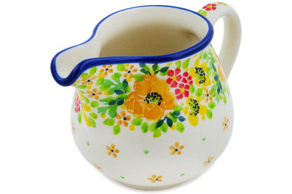This Polish Pottery 8 oz Creamer - Bright Spring is handmade and handpainted by the Ceramika Artystyczna factory in Boleslawiec, Poland.