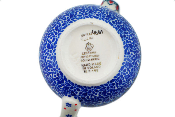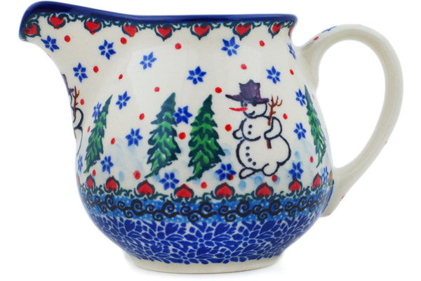 This Polish Pottery 8 oz Creamer - Dancing Snowman is handmade and handpainted by the Ceramika Artystyczna factory in Boleslawiec, Poland.