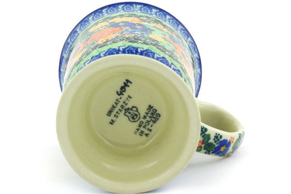 This Polish Pottery 8 oz Mug - Bountiful Basket is handmade and handpainted by the Ceramika Artystyczna factory in Boleslawiec, Poland.