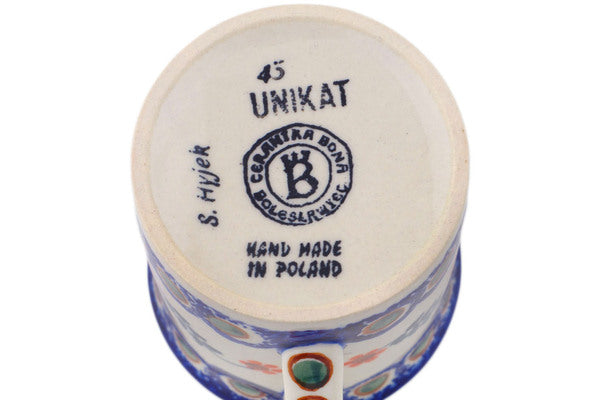 This Polish Pottery 8 oz Mug - Sunflower Peacock is handmade and handpainted by the Ceramika Bona factory in Boleslawiec, Poland.