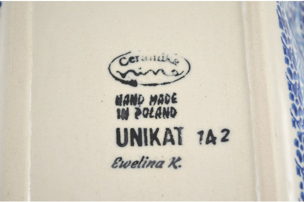 This Polish Pottery 8" Rectangular Baker - Twinkle Twinkle Little Gnome is handmade and handpainted by the Ceramika Nina factory in Boleslawiec, Poland.
