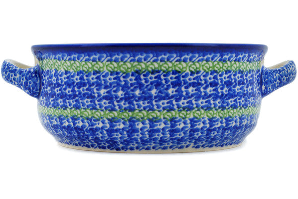 This Polish Pottery 8" Round Baker with Handles - Mushroom Garden is handmade and handpainted by the Ceramika Nina factory in Boleslawiec, Poland.