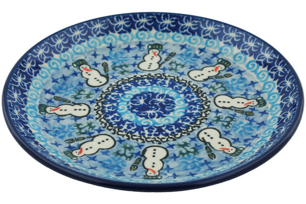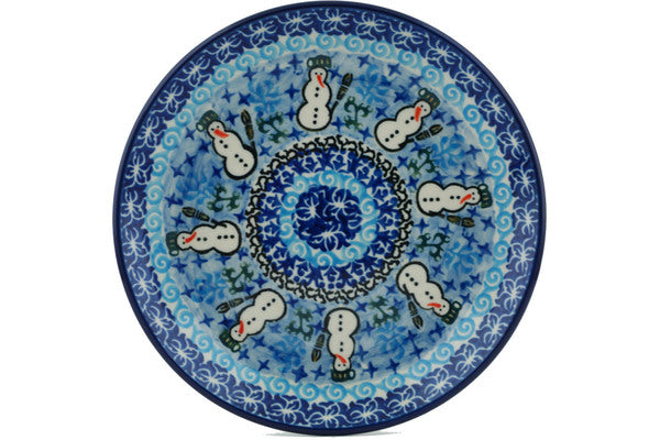 This Polish Pottery 8" Plate - Snowmen Circle is handmade and handpainted by the Ceramika Artystyczna factory in Boleslawiec, Poland.