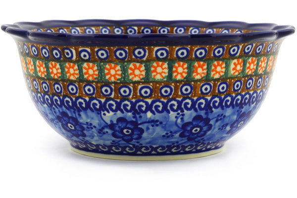 This Polish Pottery 8" Scalloped Bowl - Dancing Blue Poppies is handmade and handpainted by the Ceramika Artystyczna factory in Boleslawiec, Poland.