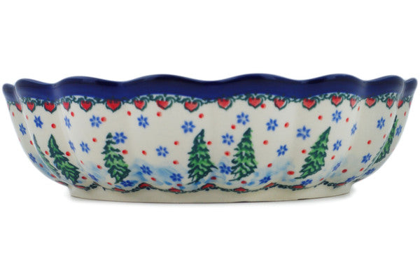 This Polish Pottery 8" Scalloped Fluted Bowl - Dancing Snowman is handmade and handpainted by the Ceramika Artystyczna factory in Boleslawiec, Poland.