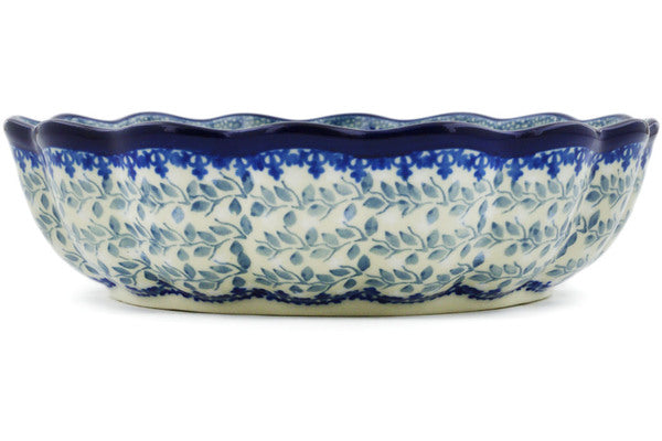 This Polish Pottery 8" Scalloped Fluted Bowl - Waiting Birds is handmade and handpainted by the Ceramika Artystyczna factory in Boleslawiec, Poland.