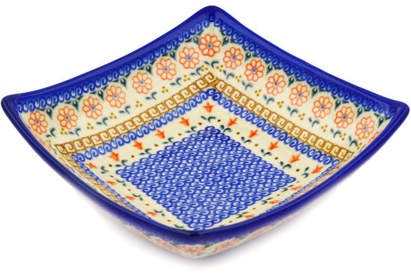 This Polish Pottery 8" Square Bowl - Amarillo is handmade and handpainted by the Ceramika Bona factory in Boleslawiec, Poland.